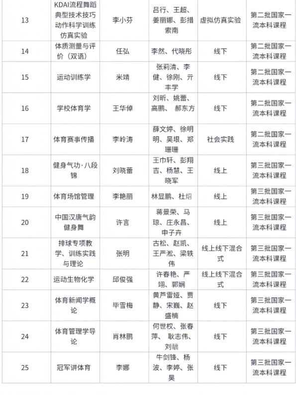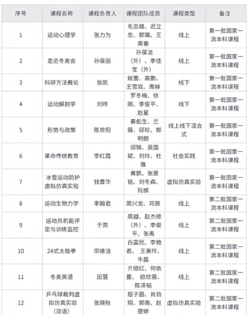 图11 北京体育大学国家级一流本科课程汇总表