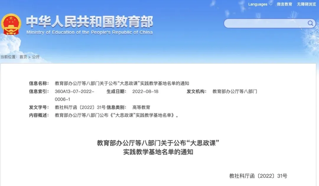 12.2022年 首批“大思政课”实践教学基地 未评等级 教育部