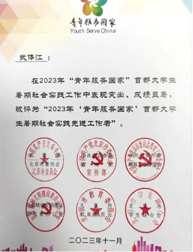 16.2023年 首都大学生暑期社会实践先进工作者
