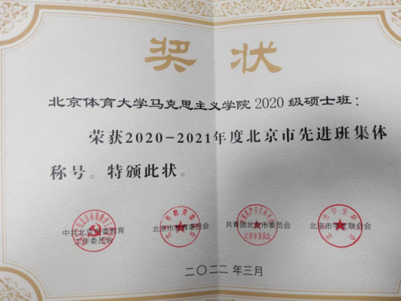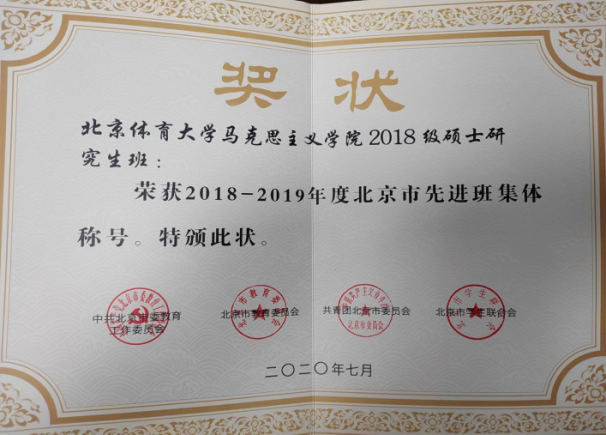 4. 2018级研究生班和2020级研究生班连续两年度获得北京市“先进班集体”荣誉称号