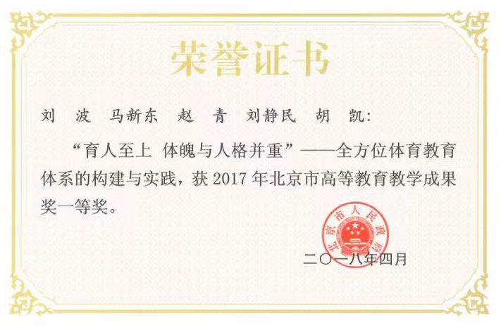 1.2018年 2017年北京市高等教育教学成果奖 一等奖 北京市人民政府