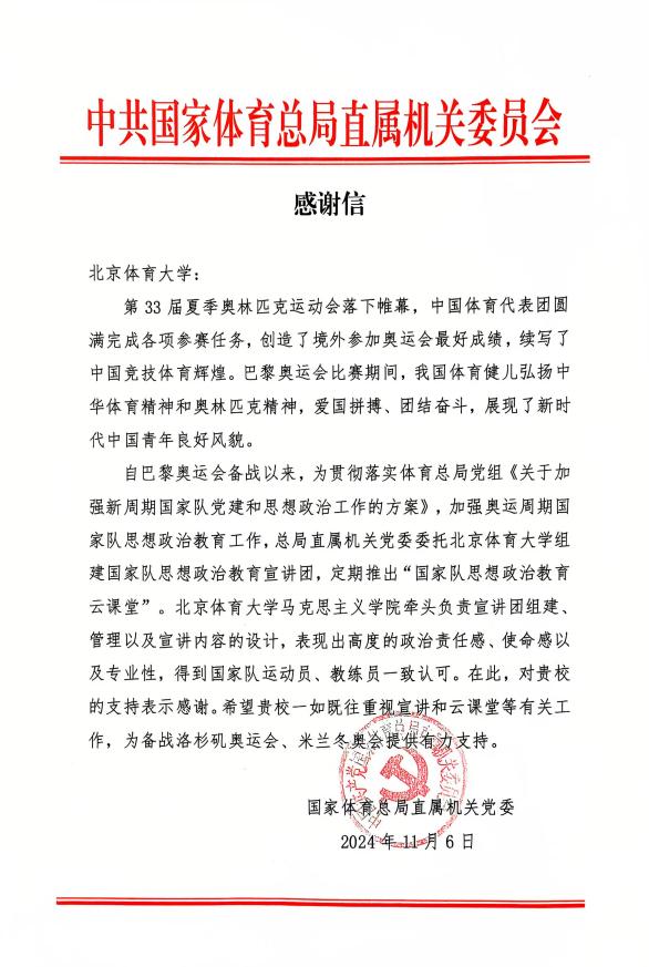 2.国家体育总局直属机关党委发给学校的感谢信