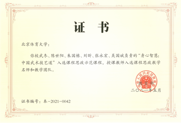 8.2021年 “身心智慧:中国武术技艺道”入选国家级课程思政示范课程 教育部