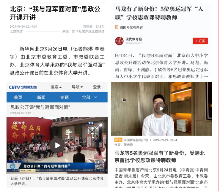 1.马克思主义学院与中国排球运动学院联合开展女排精神思政课程、课程思政“双融入”公开示范课被新华社等媒体广泛报道