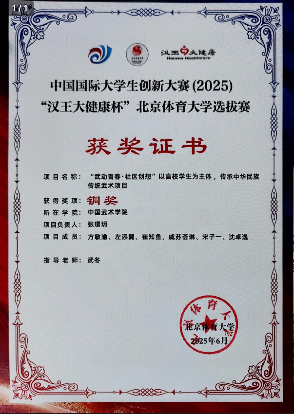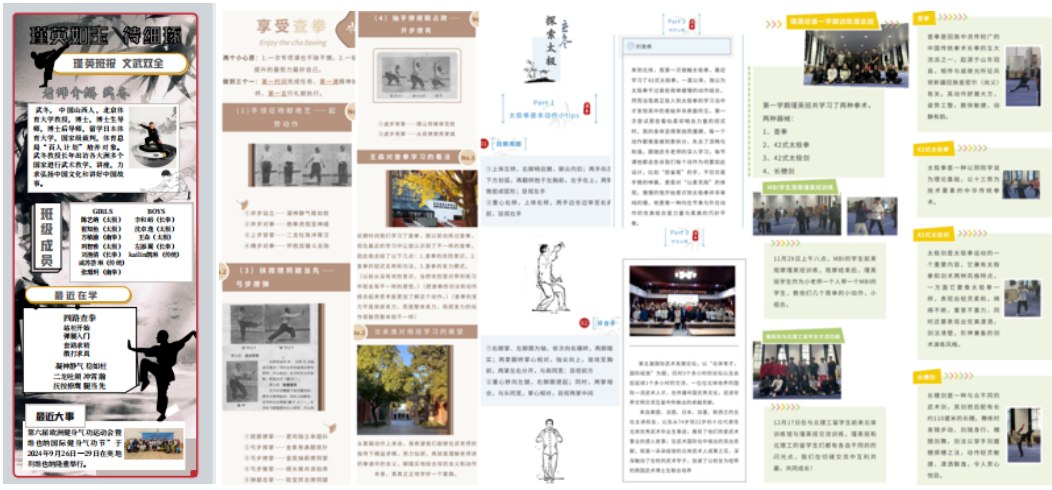在线上自学、线下提高实训、线外实践激励,课堂内外感受和浸融在良好的学习时空中,最终全面深刻掌握知识,提高实践能力和创新精神。教学模式得到学生们高度认可,同时获得学校教学专家和领导首肯,由24级套路“瑾英”班为全校师生上25年“开学第一课”展示技术与理论贯通的教学模式,2025年参加加州国际武术(线上)大赛9人次获得第一名,涌现出梁俊昕、徐一冰、张璟玥等一批即获得全国和国际武术比赛冠军,同时又在计算机创新大赛、挑战杯创业设计等竞赛获全国一等奖的文武兼备的一流人才。