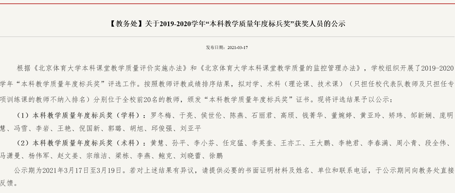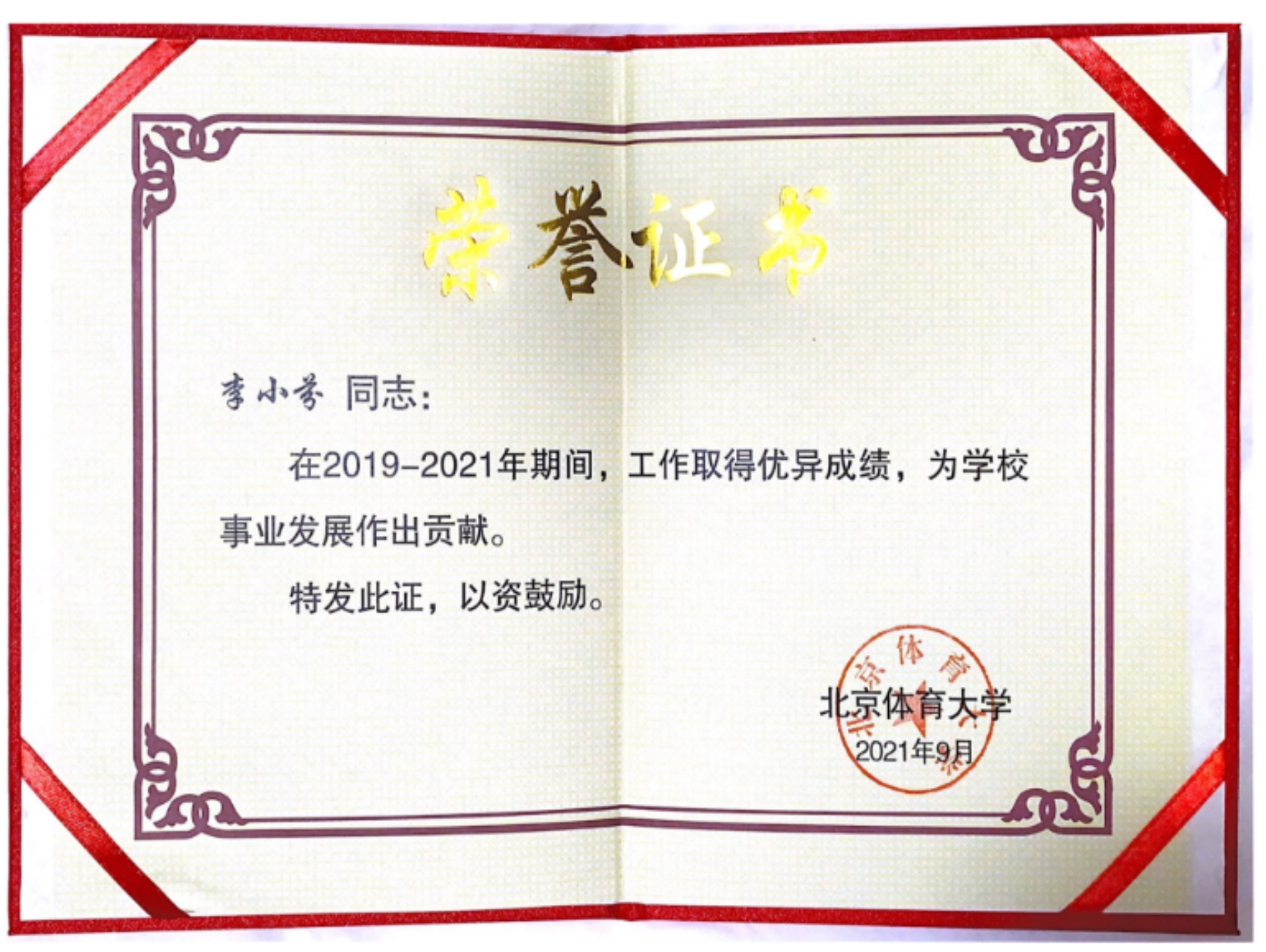 8、北京体育大学2019-2021年教学工作优秀业绩奖(2021年)