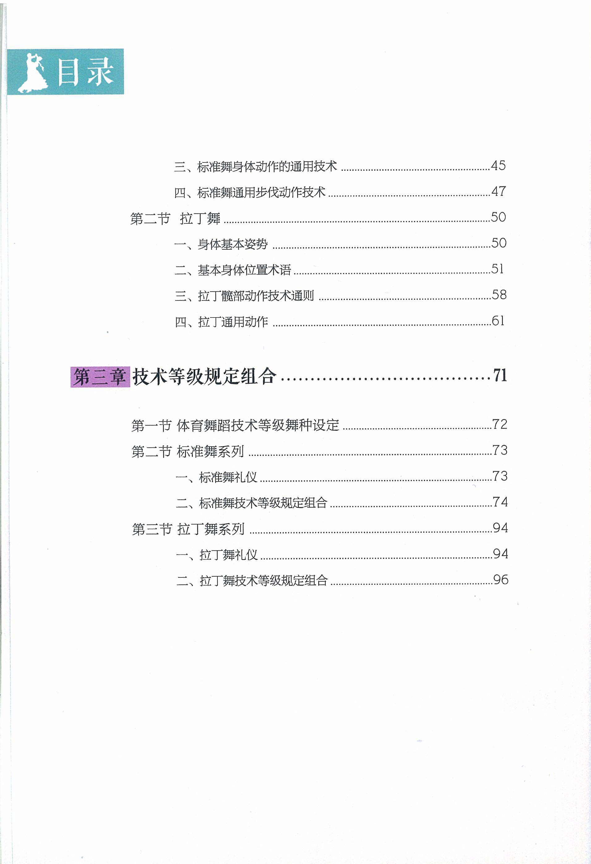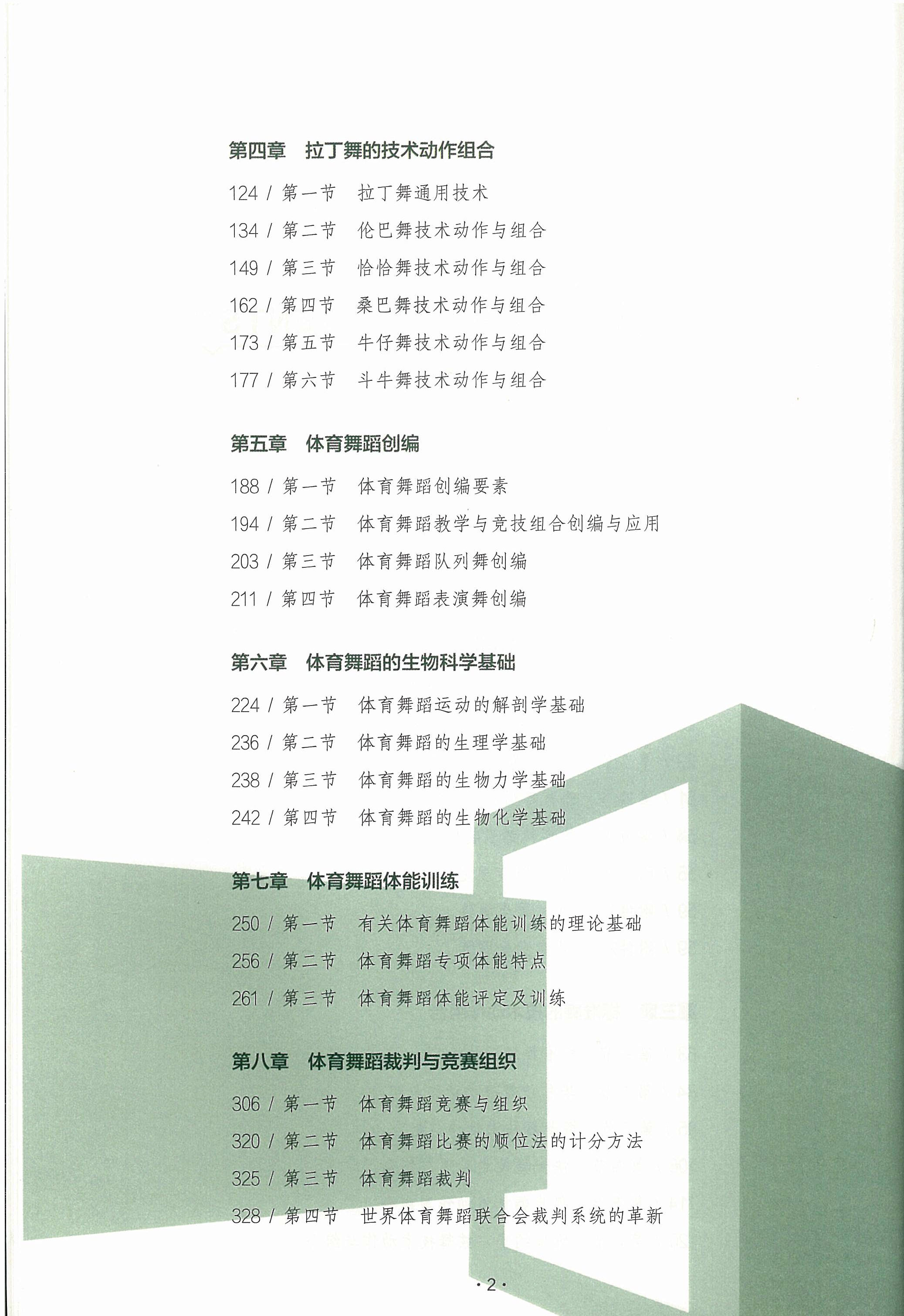 2.3参考资料 2.3.1《国际标准舞拉丁舞教程中文版》,内部资料 ,2007年第1版; 2.3.2《体育舞蹈》,北京体育大学出版社,1997年第1版; 2.3.3中国体育舞蹈联合会培训教材,内部版,2007年第2版; 2.3.4 A Technique of Advanced Standard Ballroom Figures,Geoffrey Hearn,2010年第7版; 2.3.5《运动训练学》,田麦久,人民体育出版社,2000年第2版; 2.3.6《高水平竞技体能训练》,杨桦,2006年; 2.3.7《拉丁美洲音乐》, 陈自明,中央音乐学院,内部教材; 2.3.8《国际标准舞ISTD指定步型和考级教程》,傅中枢,中国舞协舞蹈学校出版,1997年。