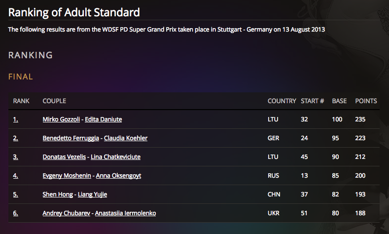 2、德国体育舞蹈公开赛标准舞职业组第五名(2013年)