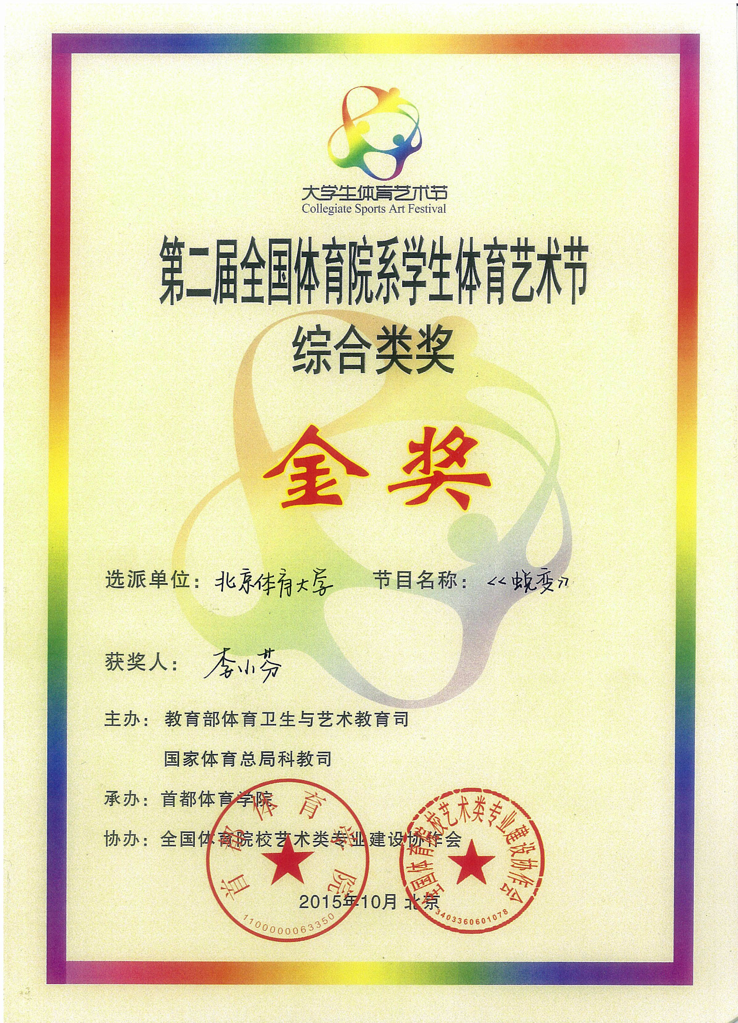(4)《蜕变》获第二届全国体育院系学生体育艺术节体育舞蹈组别金奖、最佳技术技巧奖