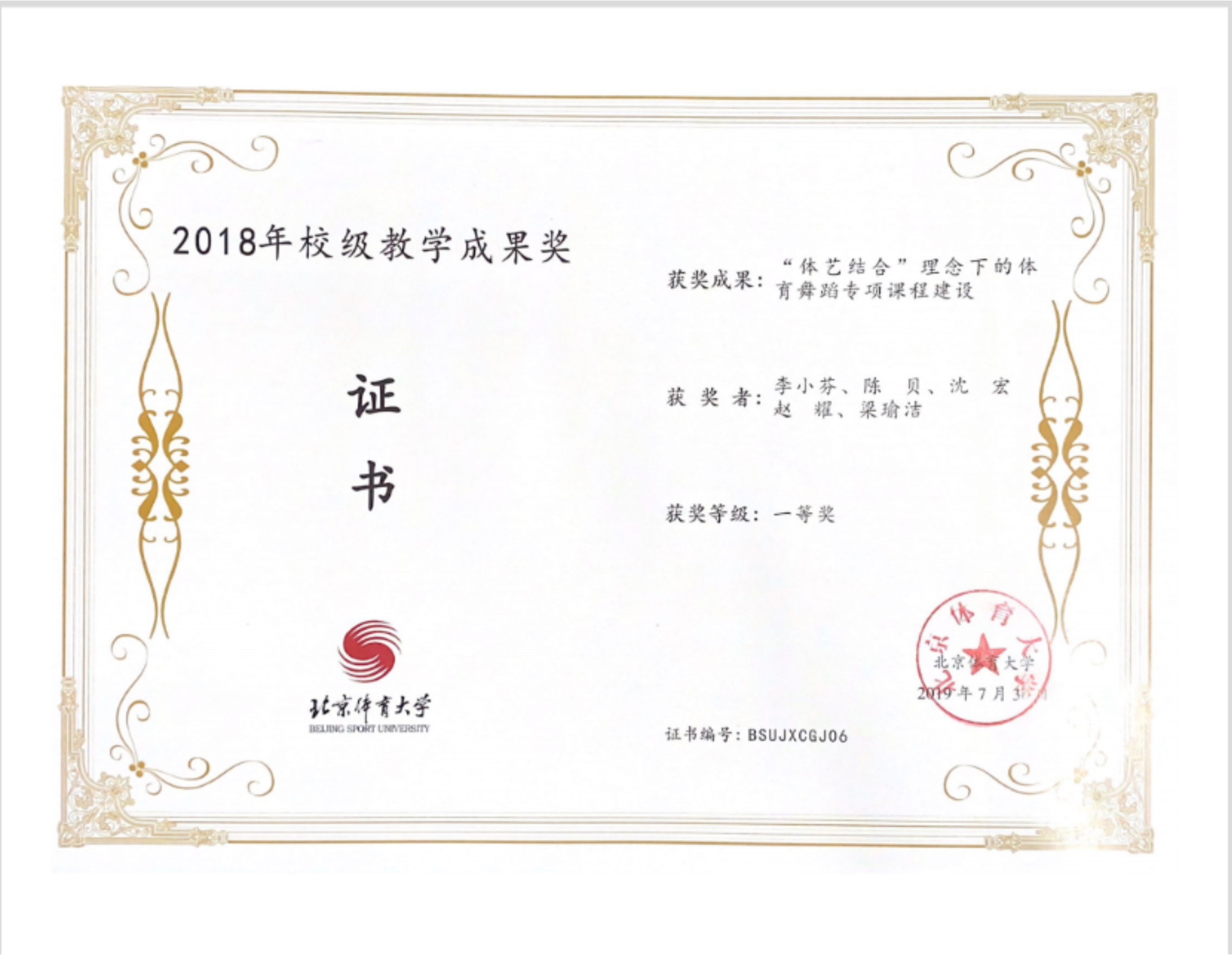 (4)第二届全国体育院系学生体育艺术节体育舞蹈组别金奖、最佳技术技巧奖作品《蜕变》获奖证明