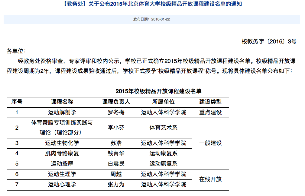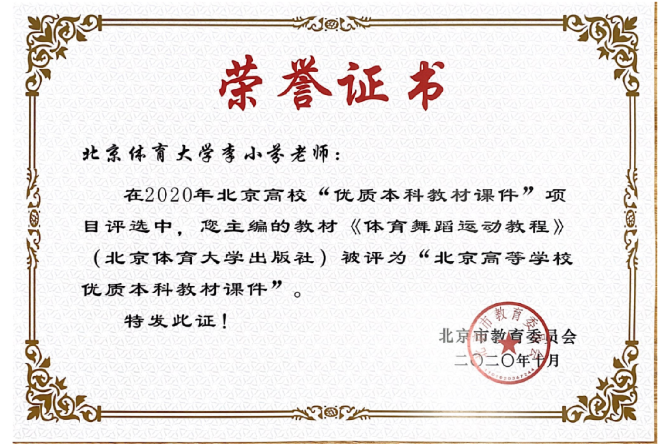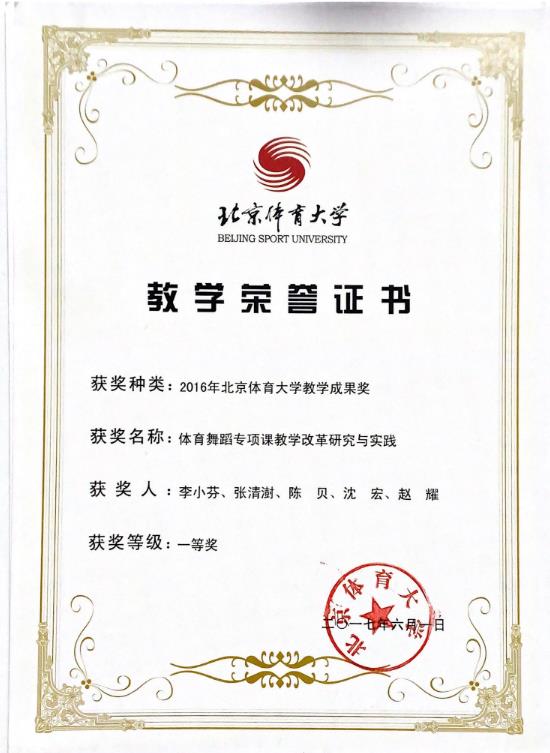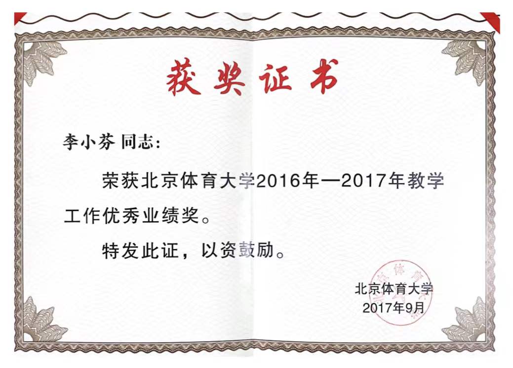 4、北京体育大学2016-2017年教学工作优秀业绩奖(2017年)