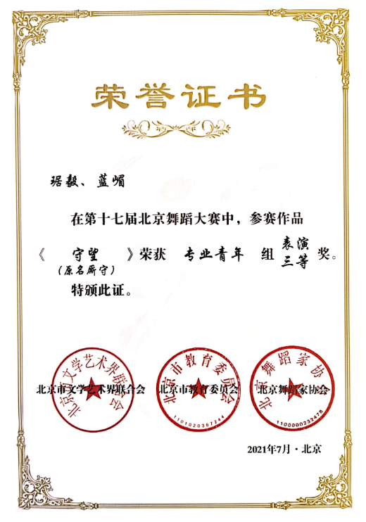 (6)第十七届北京舞蹈大赛《守望》专业青年组表演三等奖获奖证明