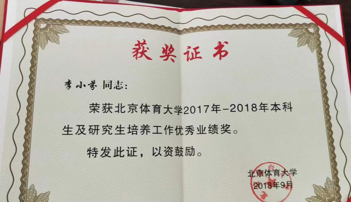 5、北京体育大学2017-2018年本科及研究生培养工作优秀业绩奖(2018年)