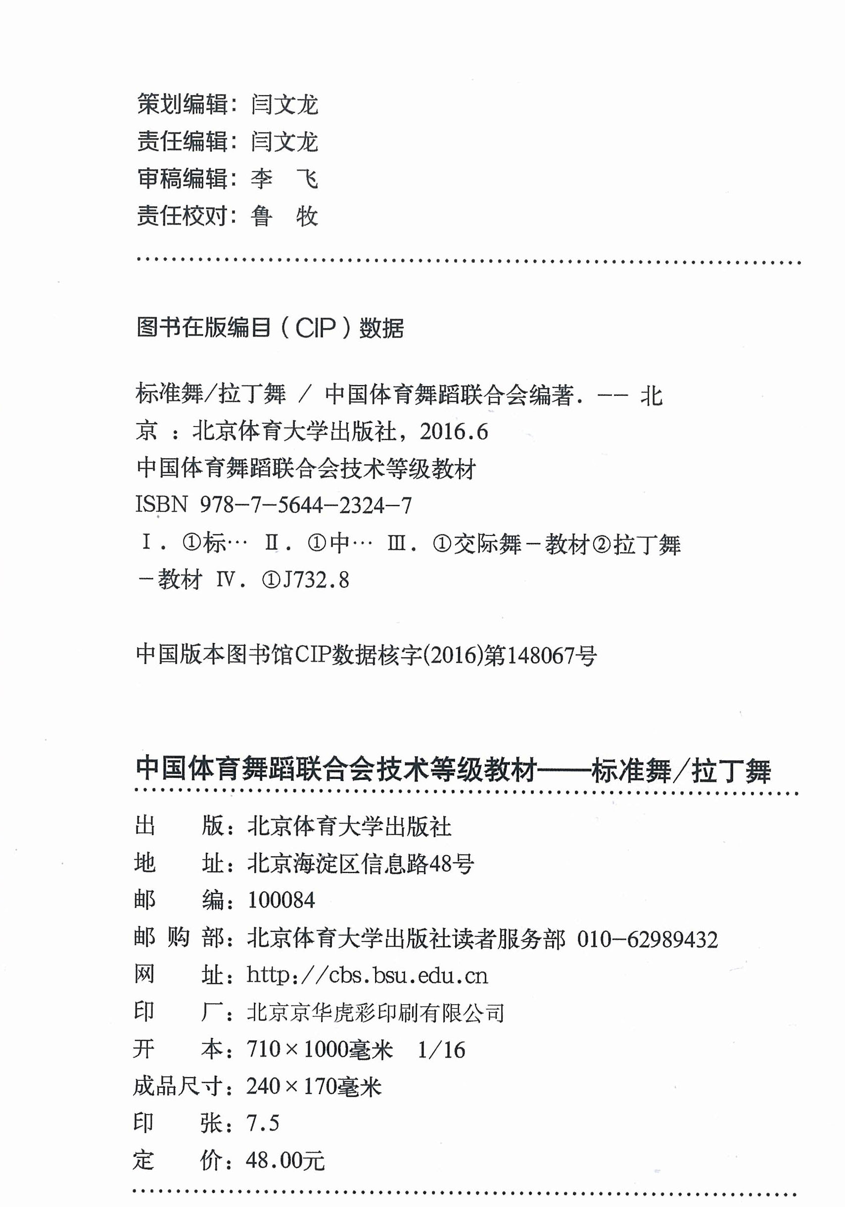 2.教材《中国体育舞蹈联合会技术等级教材》(2016年)